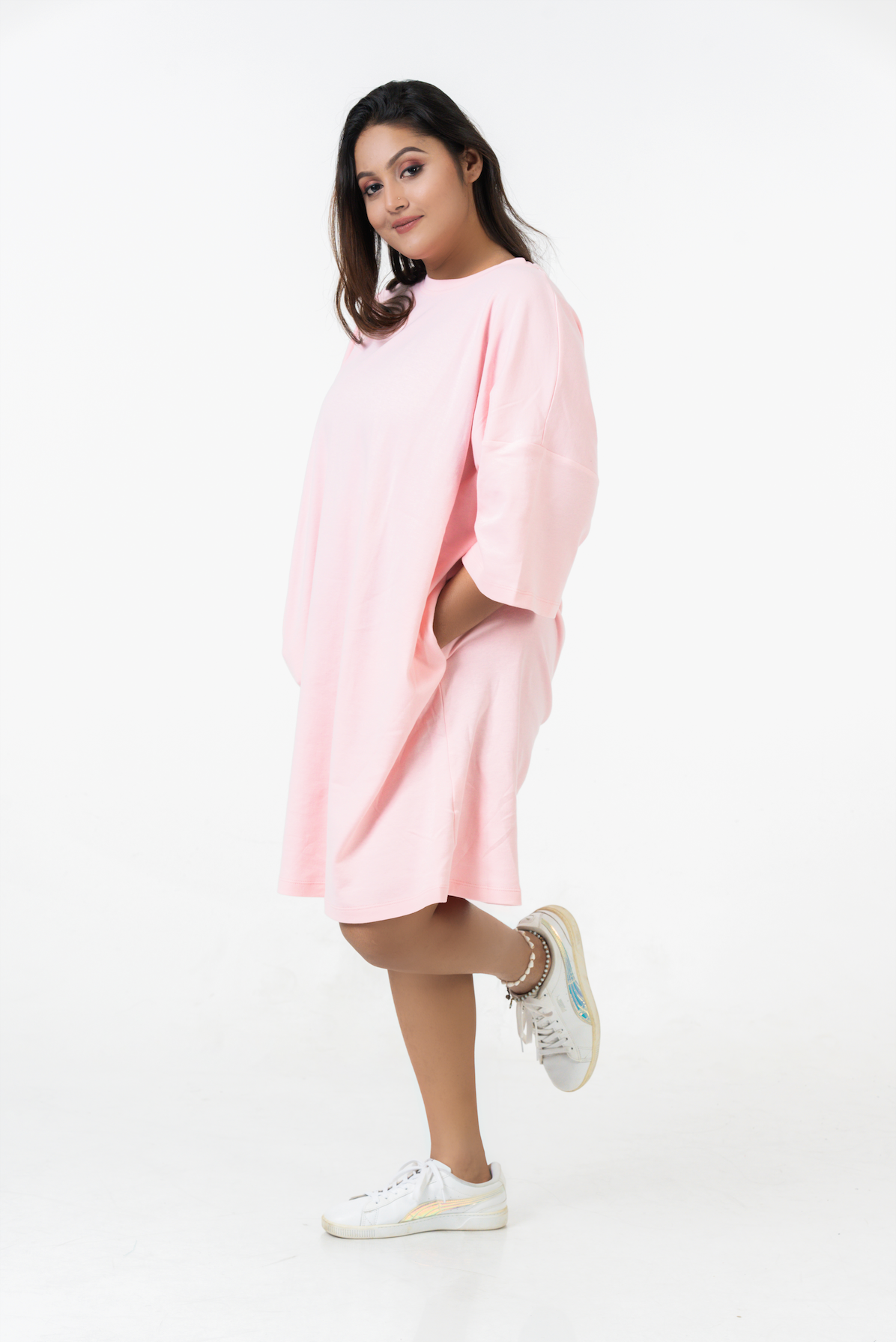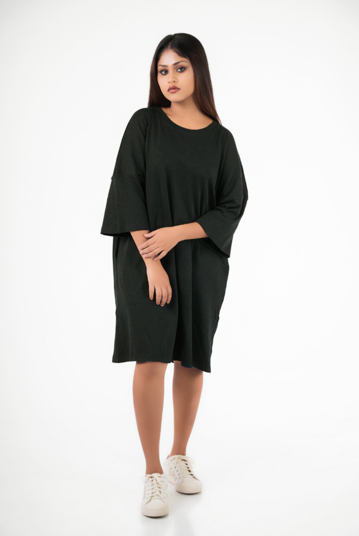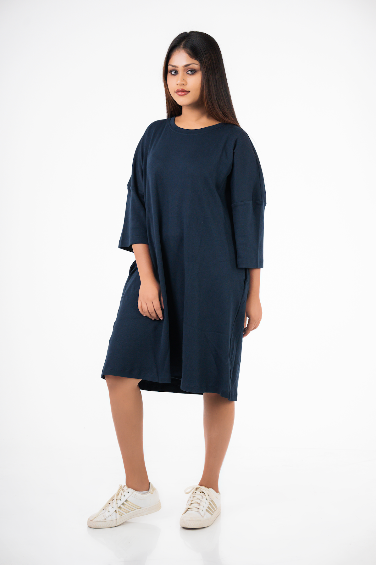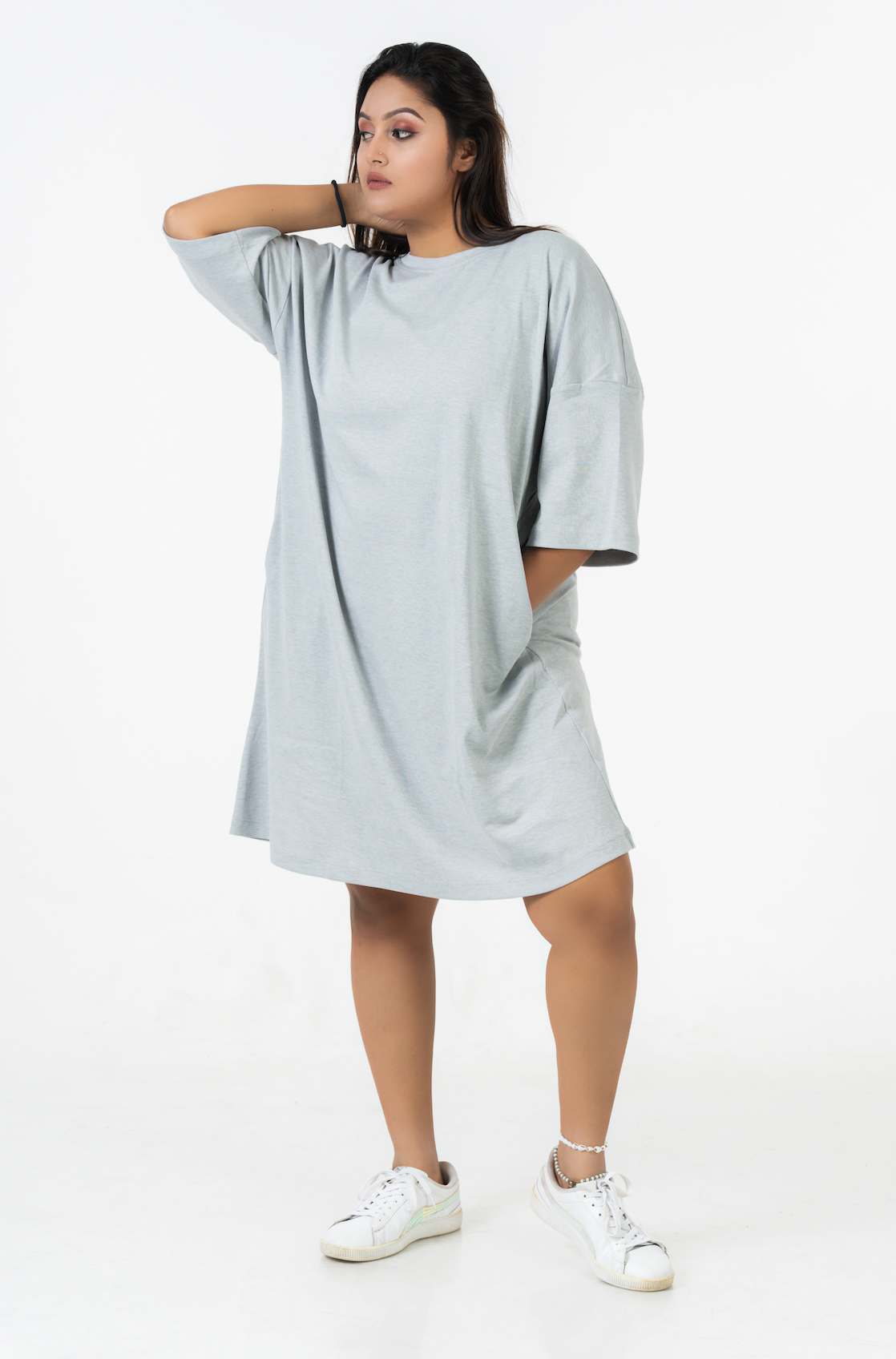 Introducing our best-selling one-size t-shirt, as a dress with extra length. Elevate your style with this versatile piece.