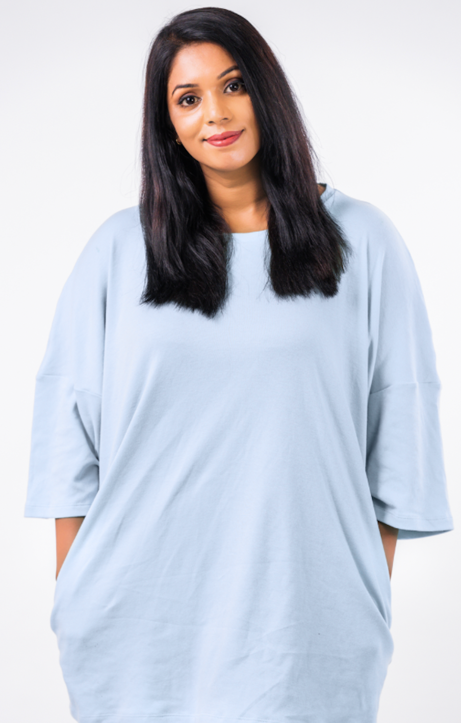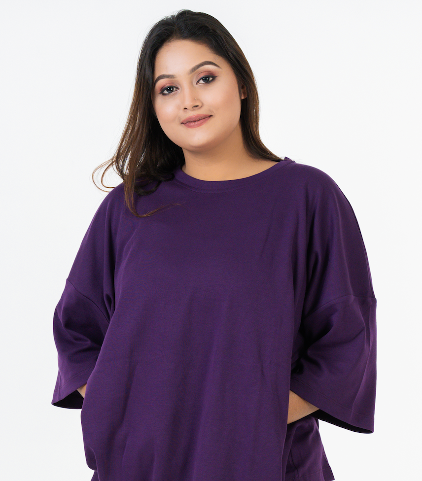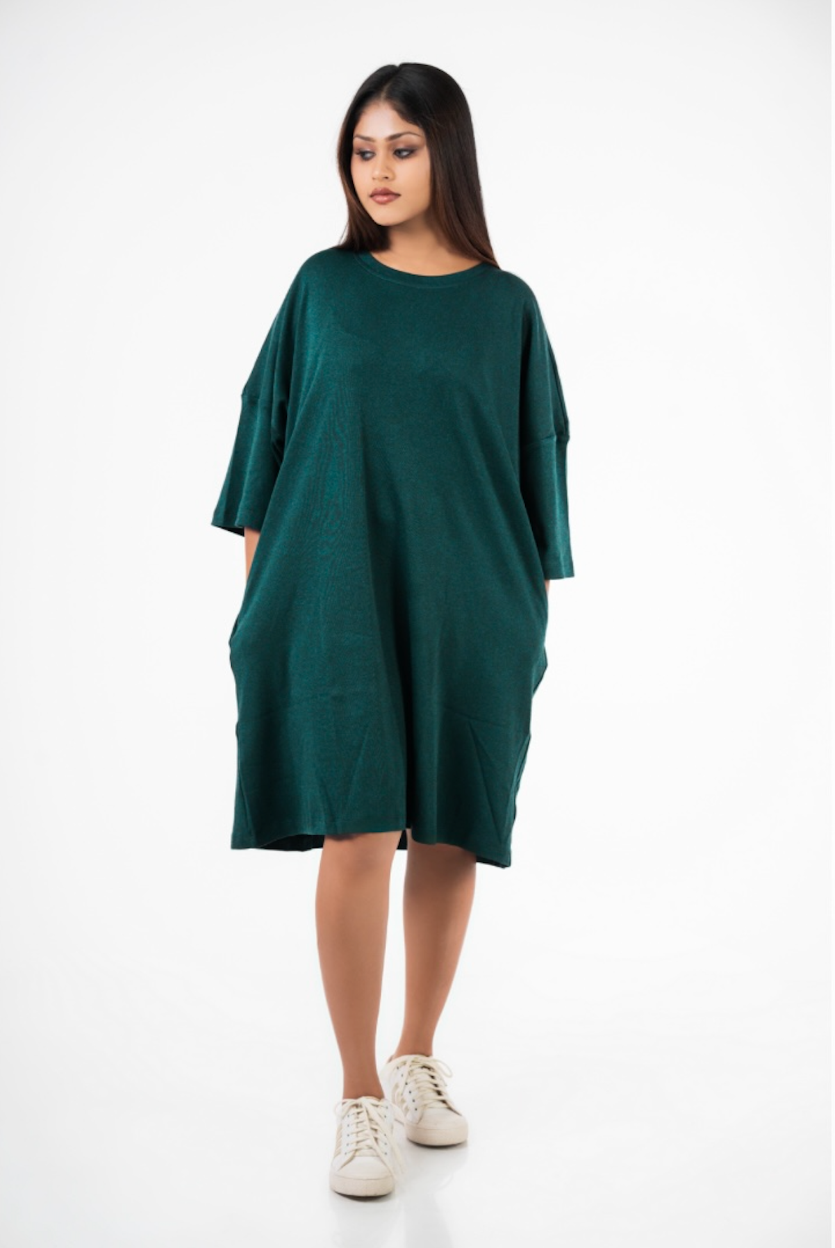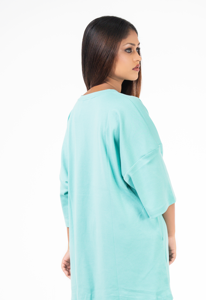 Introducing our best-selling one-size t-shirt, as a dress with extra length. Elevate your style with this versatile piece.